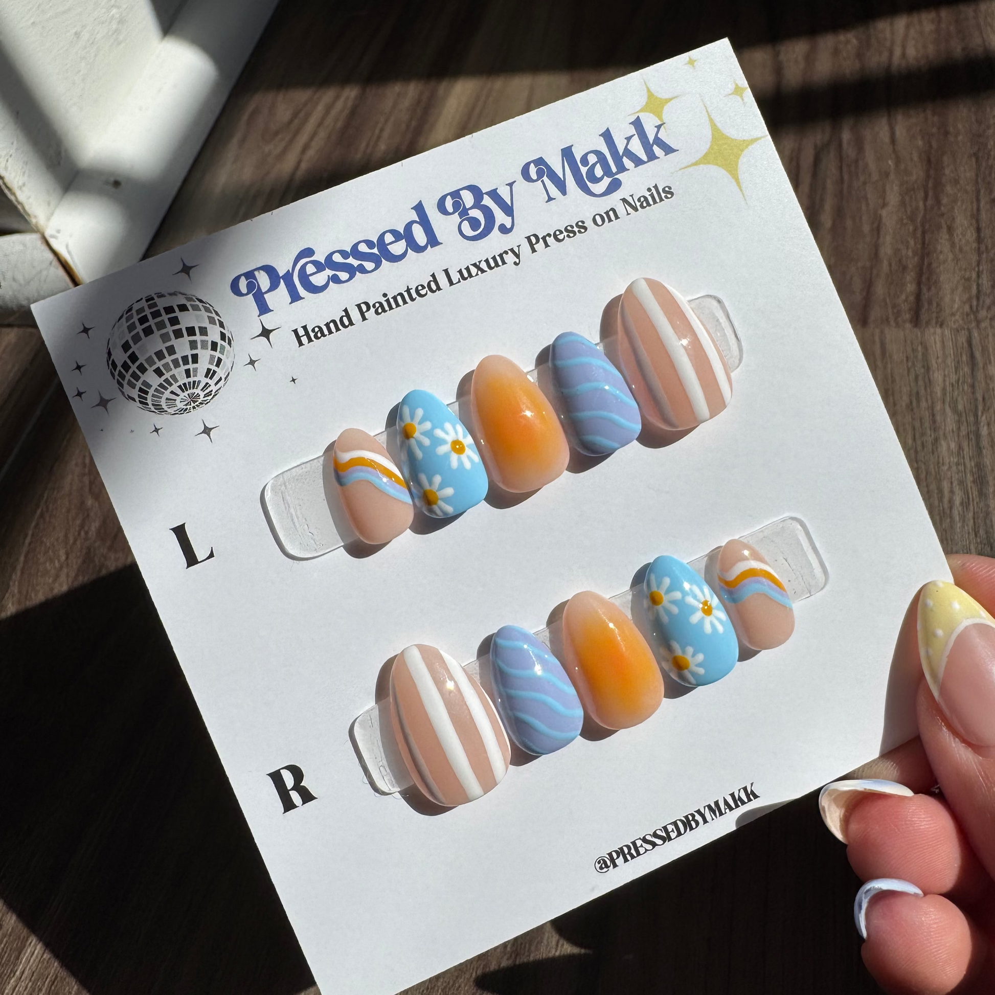PressedByMakk luxury press on nails are all hand painted and custom just for you. They last 2+ weeks and are even reusable! Send me a message or order your sizing kit to start your order today!🪩✨💙