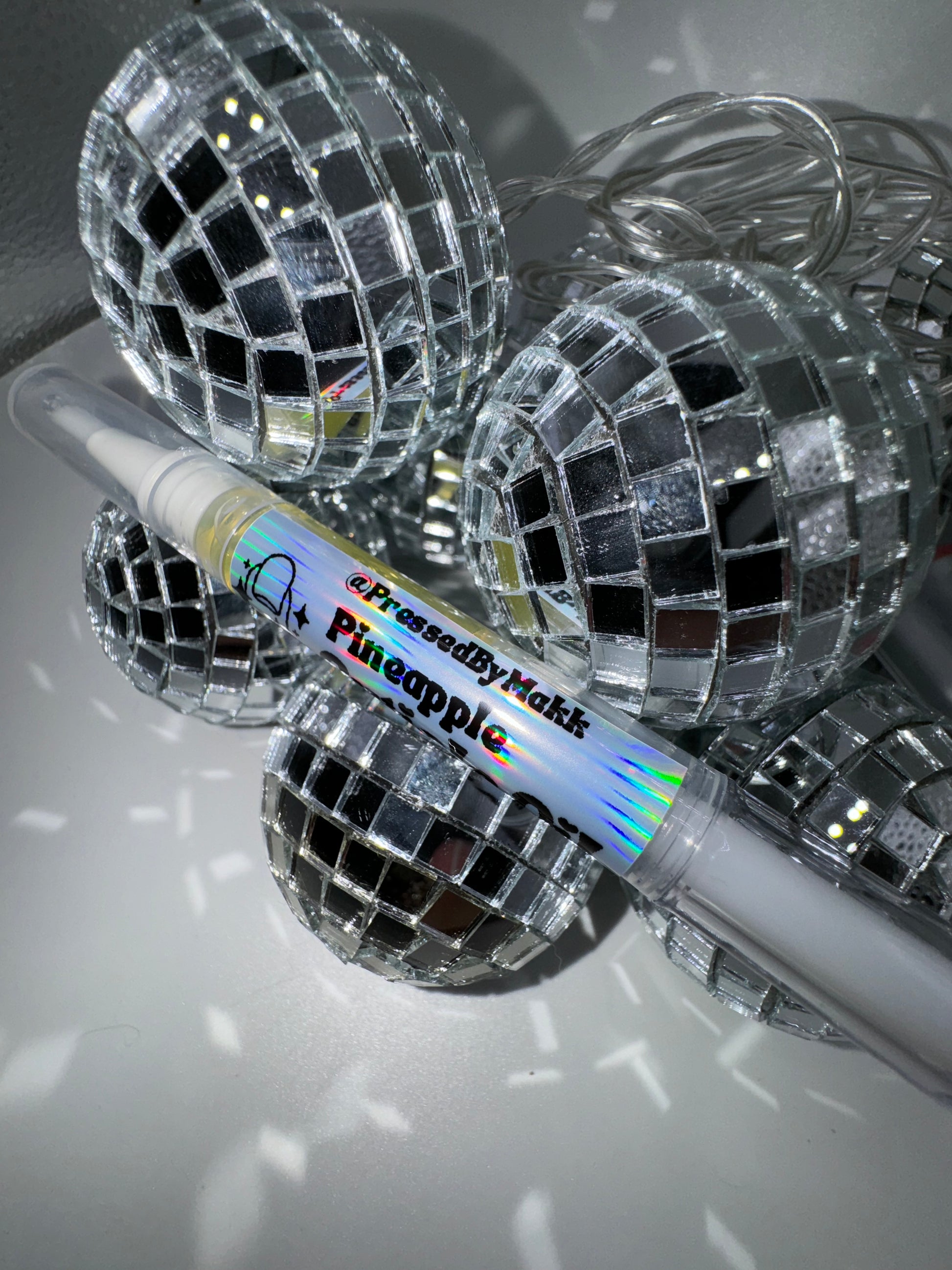 Cuticle Oil made with jojoba oil, sweet almond oil, and vitamin e oil. 3 ml Brush on applicator.