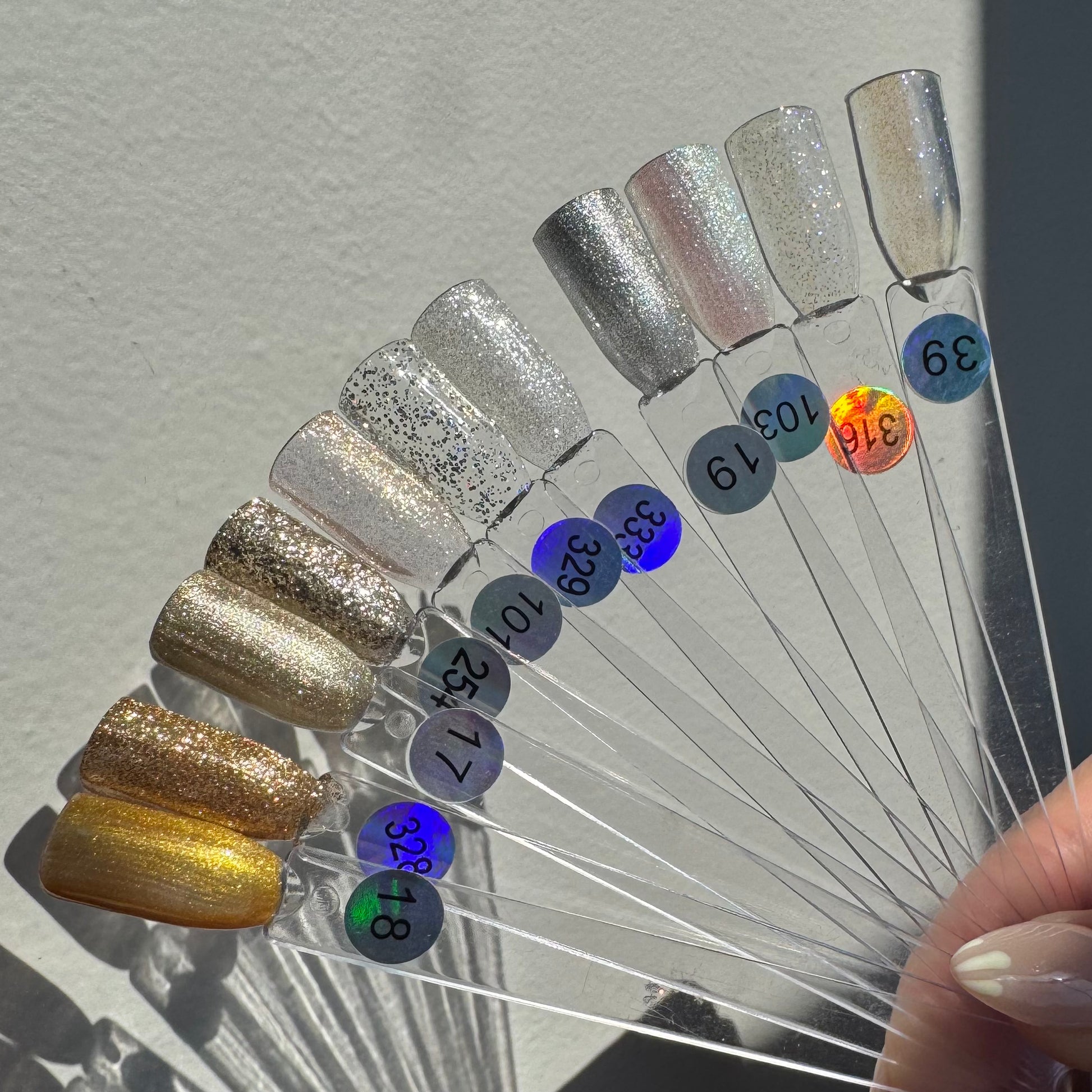 Glitter set includes all glitter colors, can be mismatched colors, no designs on any nails.