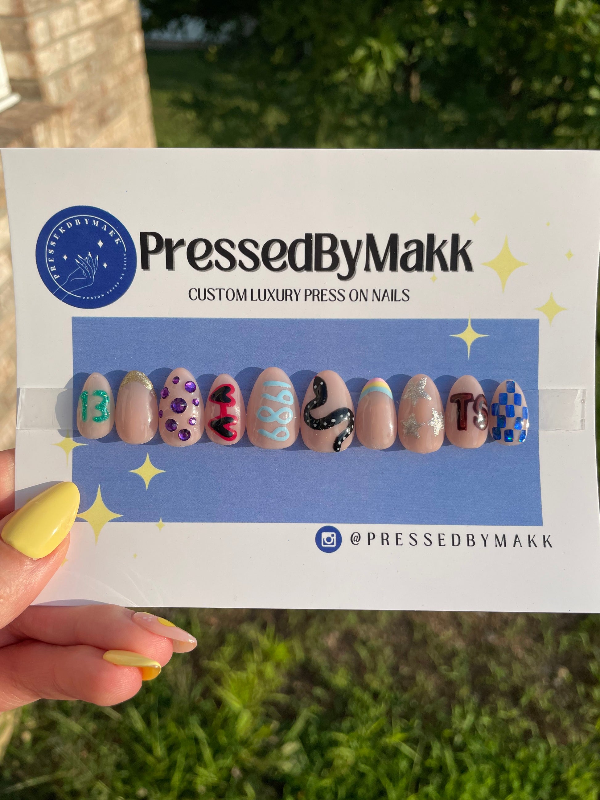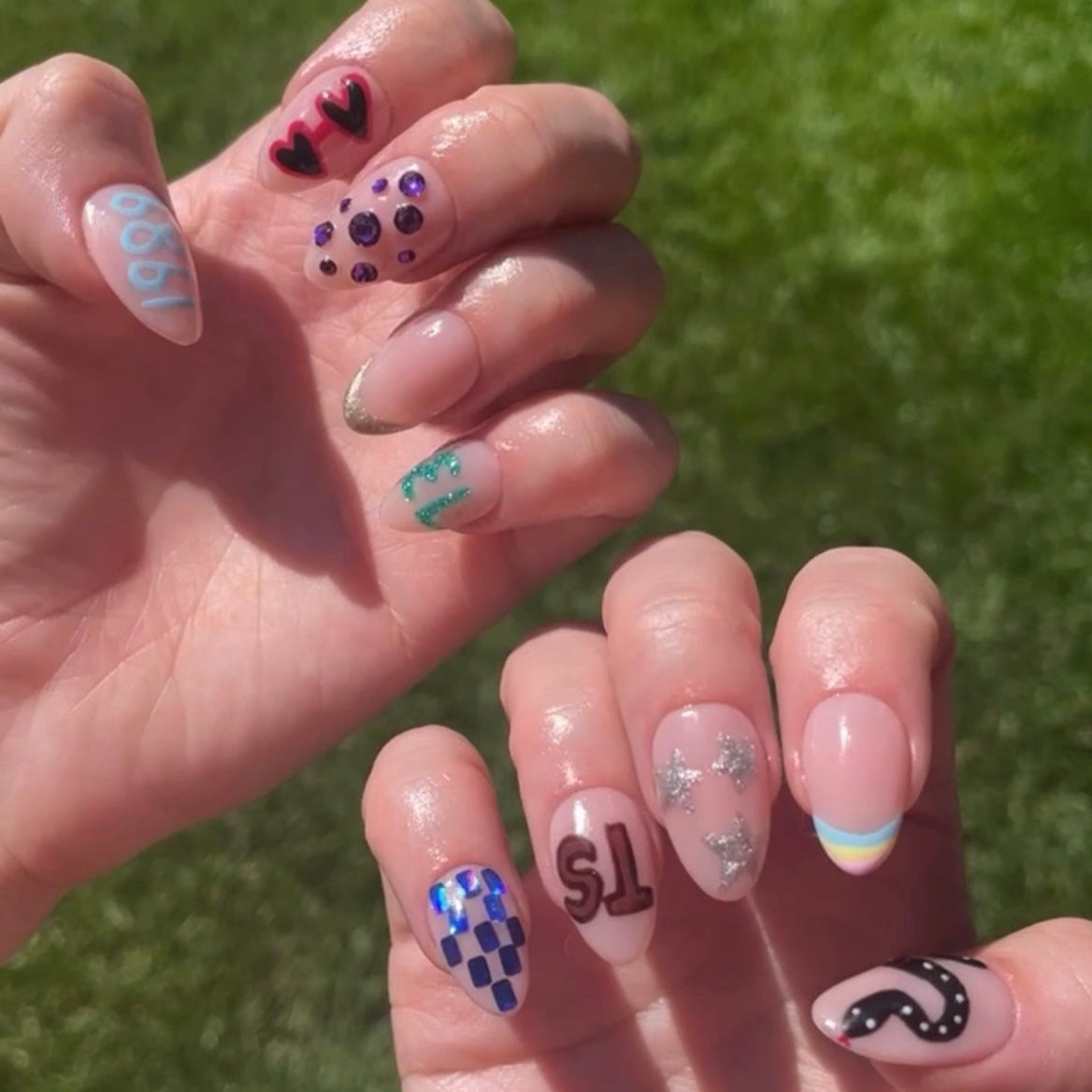 another set that is perfect for the Eras's tour. One nail inspired by each TS era.