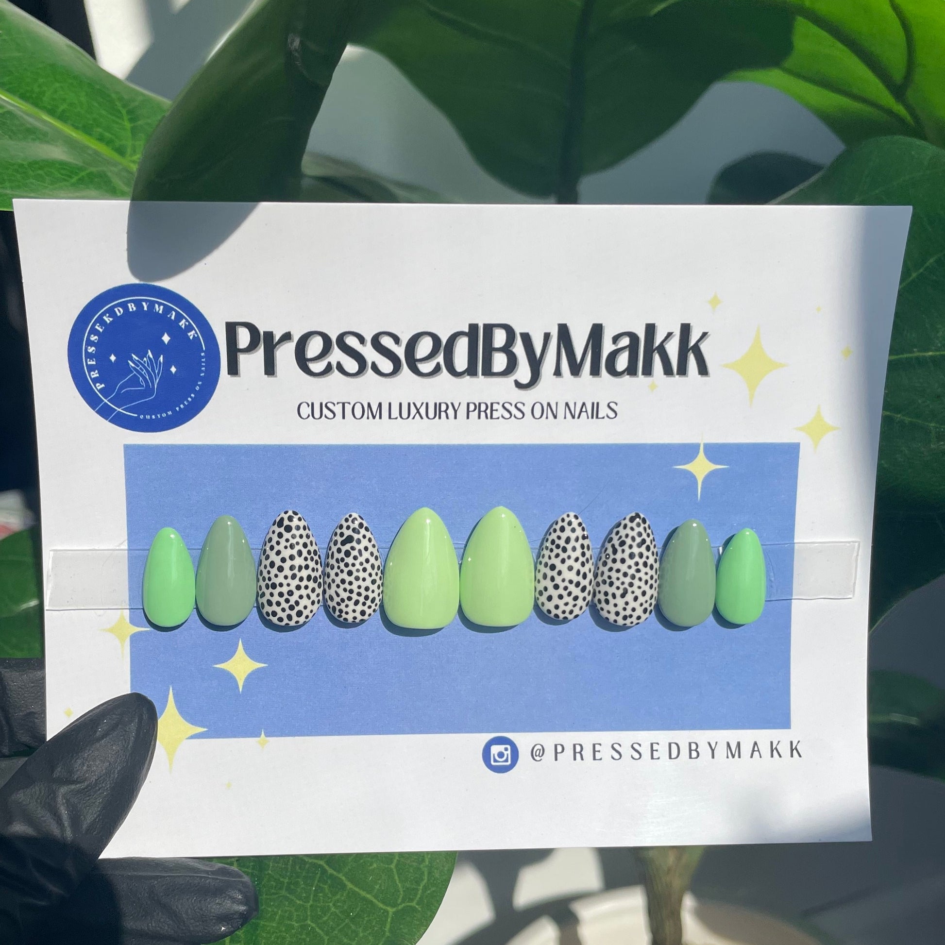 PressedByMakk luxury press on nails are all hand painted and custom just for you. They last 2+ weeks and are even reusable! Send me a message or order your sizing kit to start your order today!🪩✨💙