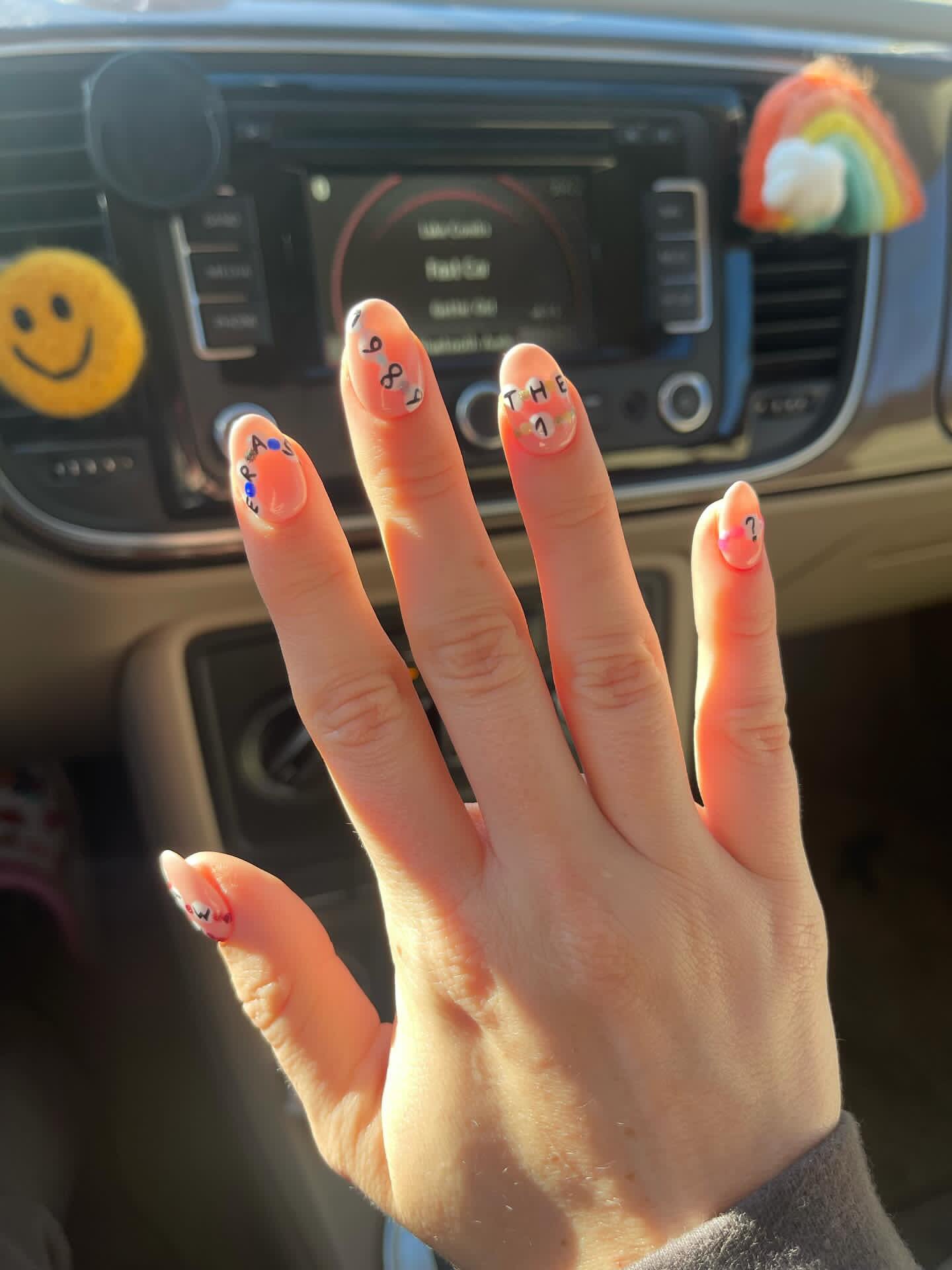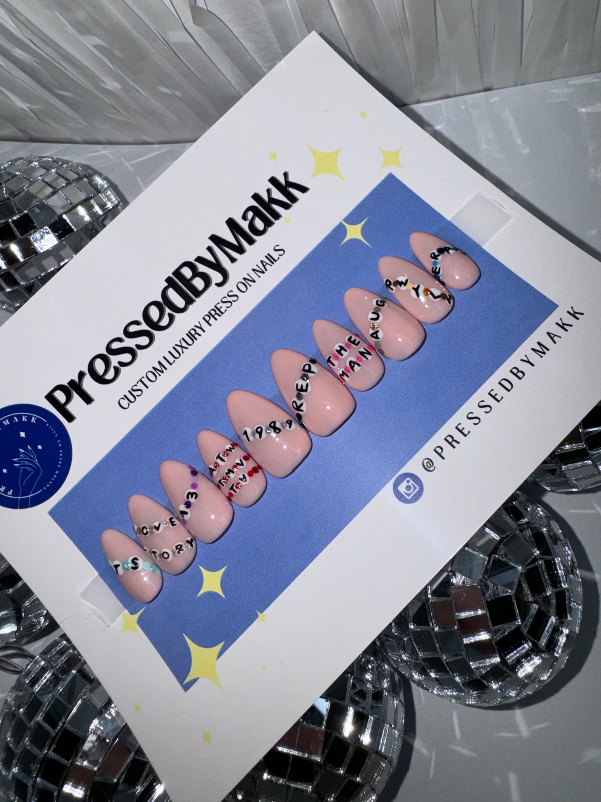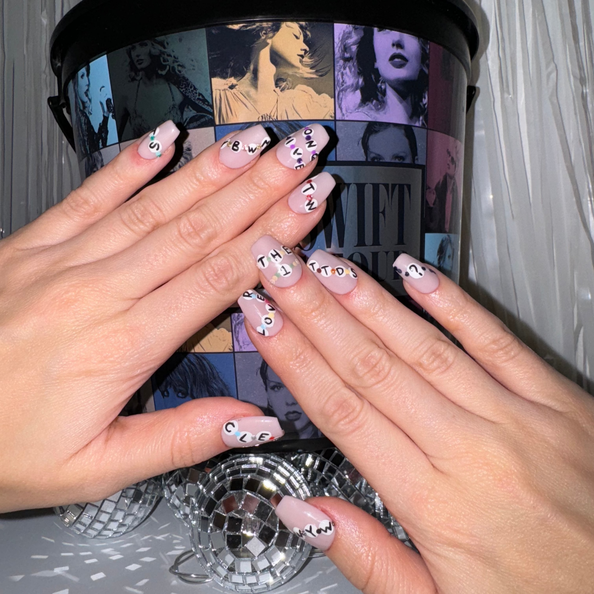 Taylor inspired friendship bracelet nails! Each nail represents an era, and yes they are customizable!