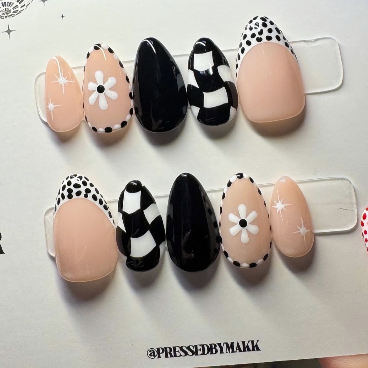 PressedByMakk luxury press on nails are all hand painted and custom just for you. They last 2+ weeks and are even reusable! Send me a message or order your sizing kit to start your order today!🪩✨💙