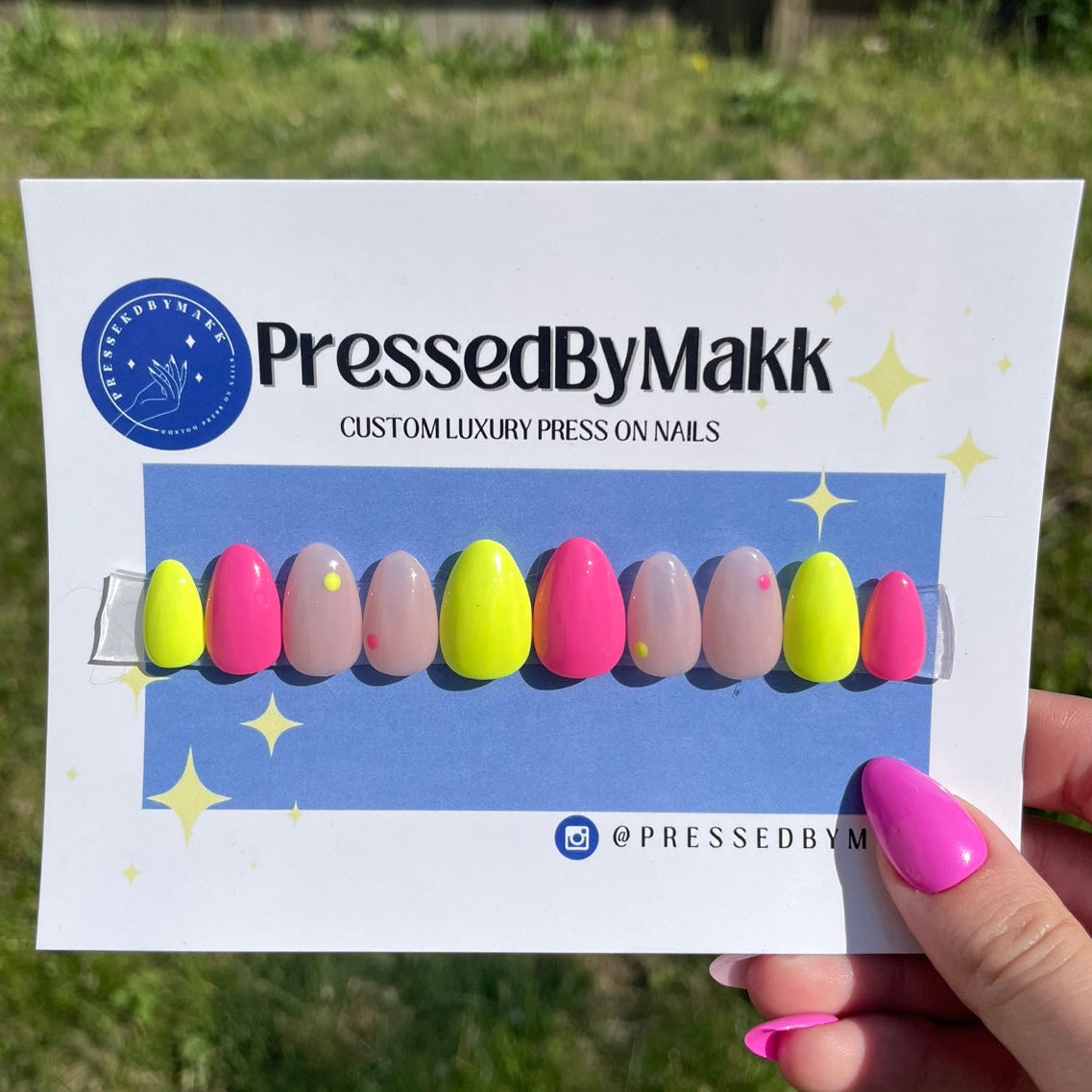 PressedByMakk luxury press on nails are all hand painted and custom just for you. They last 2+ weeks and are even reusable! Send me a message or order your sizing kit to start your order today!🪩✨💙