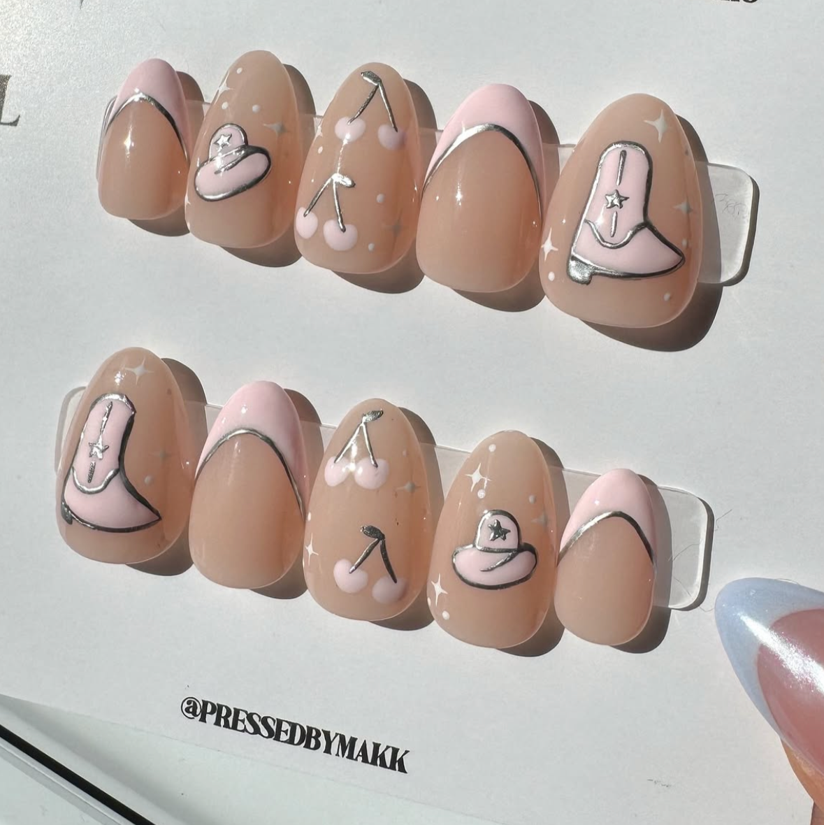 PressedByMakk luxury press on nails are all hand painted and custom just for you. They last 2+ weeks and are even reusable! Send me a message or order your sizing kit to start your order today!🪩✨💙