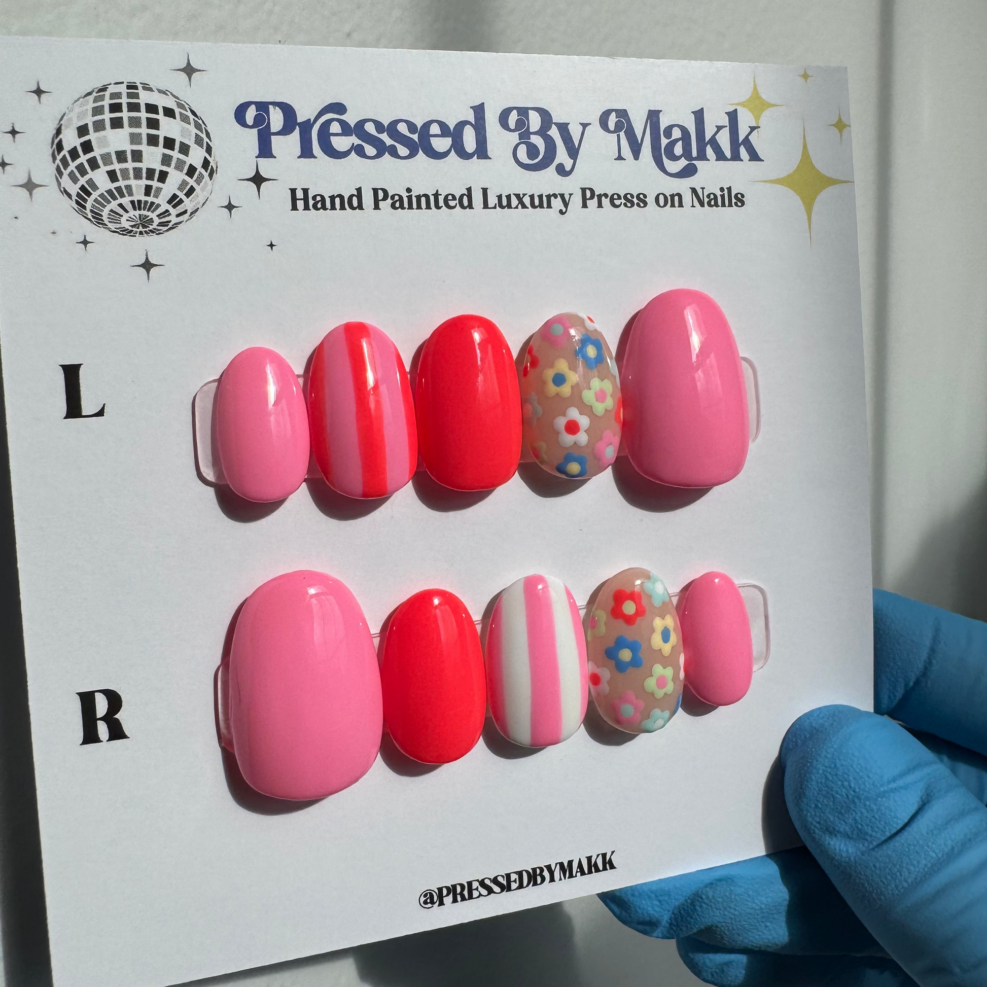 PressedByMakk luxury press on nails are all hand painted and custom just for you. They last 2+ weeks and are even reusable! Send me a message or order your sizing kit to start your order today!🪩✨💙