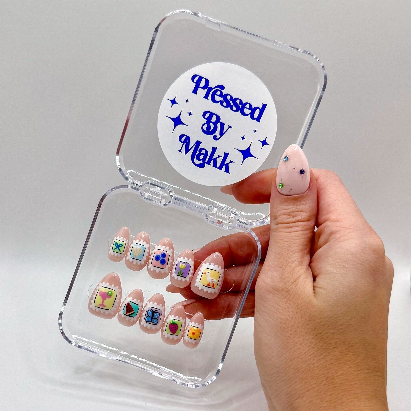 Storage cases for your luxury press on nails! Holds 1 set of nails. Comes with glue to hold the nails in the case.