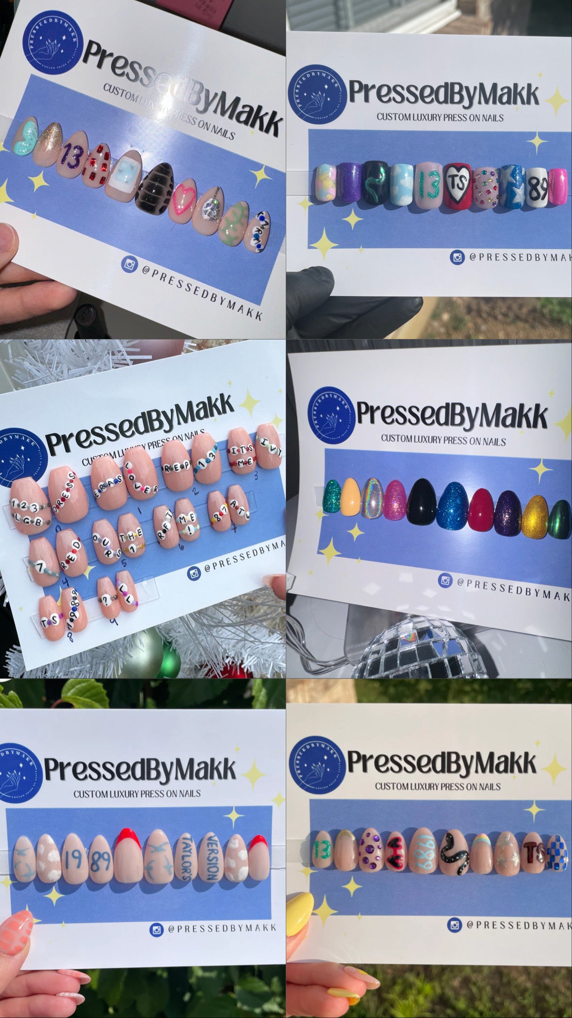 PressedByMakk luxury press on nails are all hand painted and custom just for you. They last 2+ weeks and are even reusable! Send me a message or order your sizing kit to start your order today!🪩✨💙