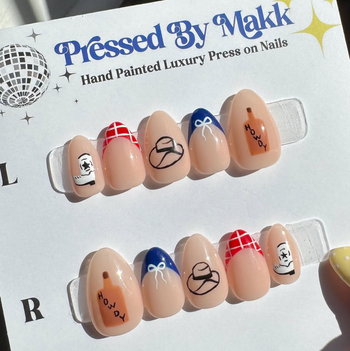 PressedByMakk luxury press on nails are all hand painted and custom just for you. They last 2+ weeks and are even reusable! Send me a message or order your sizing kit to start your order today!🪩✨💙