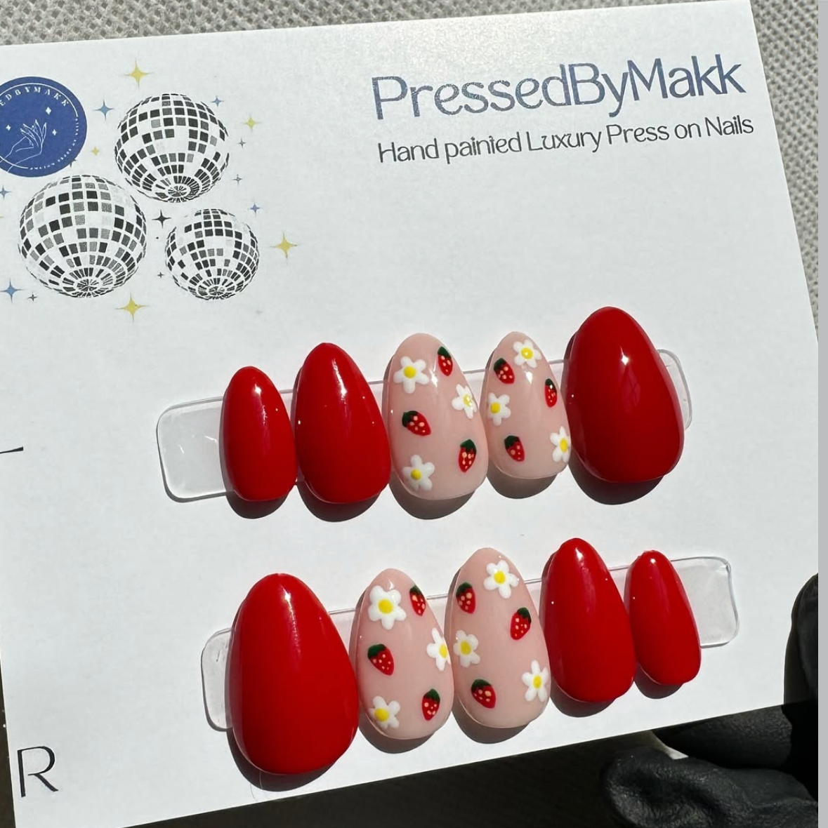 PressedByMakk luxury press on nails are all hand painted and custom just for you. They last 2+ weeks and are even reusable! Send me a message or order your sizing kit to start your order today!🪩✨💙