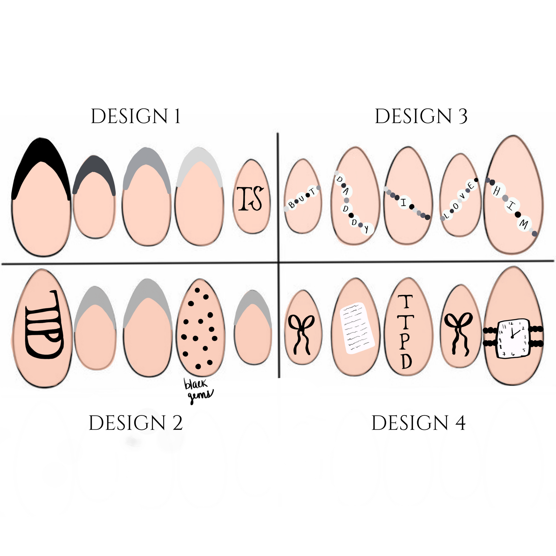 Pick one of the four designs and your shape to become an honorary member of The Tortured Poets Department.